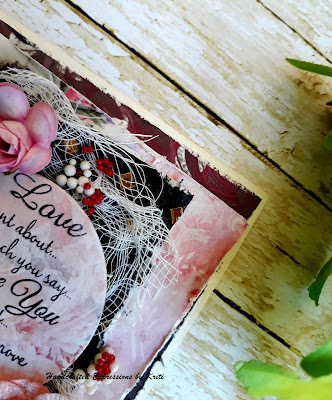 5. Now the most interest and time taking part was the composition. For that I have fussy cut some flowers and butterflies from the paper pack, torn few sheets to make the base for the focal point,collected some embellishments like flowers, buttons, chip boards, cheese cloth, sisal, art stones and glass beads.